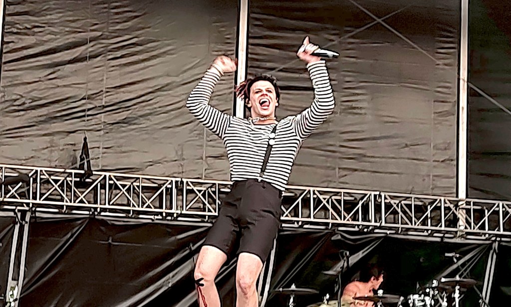 Rocking out the Roots Stage was South Yorkshire native YUNGBLUD, sporting a bloody knee and an electric energy that ran through an audience ready to see what antics he has in store. While it could be construed to be for the show, it wouldn’t be hard to imagine YUNGBLUD taping up his knee minutes before his set time due to some wild antics backstage. Running back and forth, jumping and gyrating, this rocker really drove the girls on the barricade wild. Performing crowd favorites “superdeadfriends”, “I Love You, Will You Marry Me?” and a cover of MGK’s “I Think I’m OKAY” featuring jxdn doing Machine Gun Kelly’s part, YUNGBLUD proved that it doesn’t have to take a full band to cover a stage. Sometimes you just need a drummer, an acoustic guitar, and the energy of the Energizer Bunny to rile up a crowd.