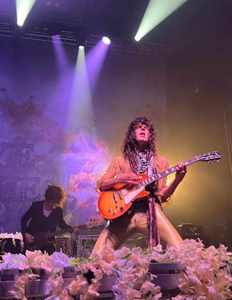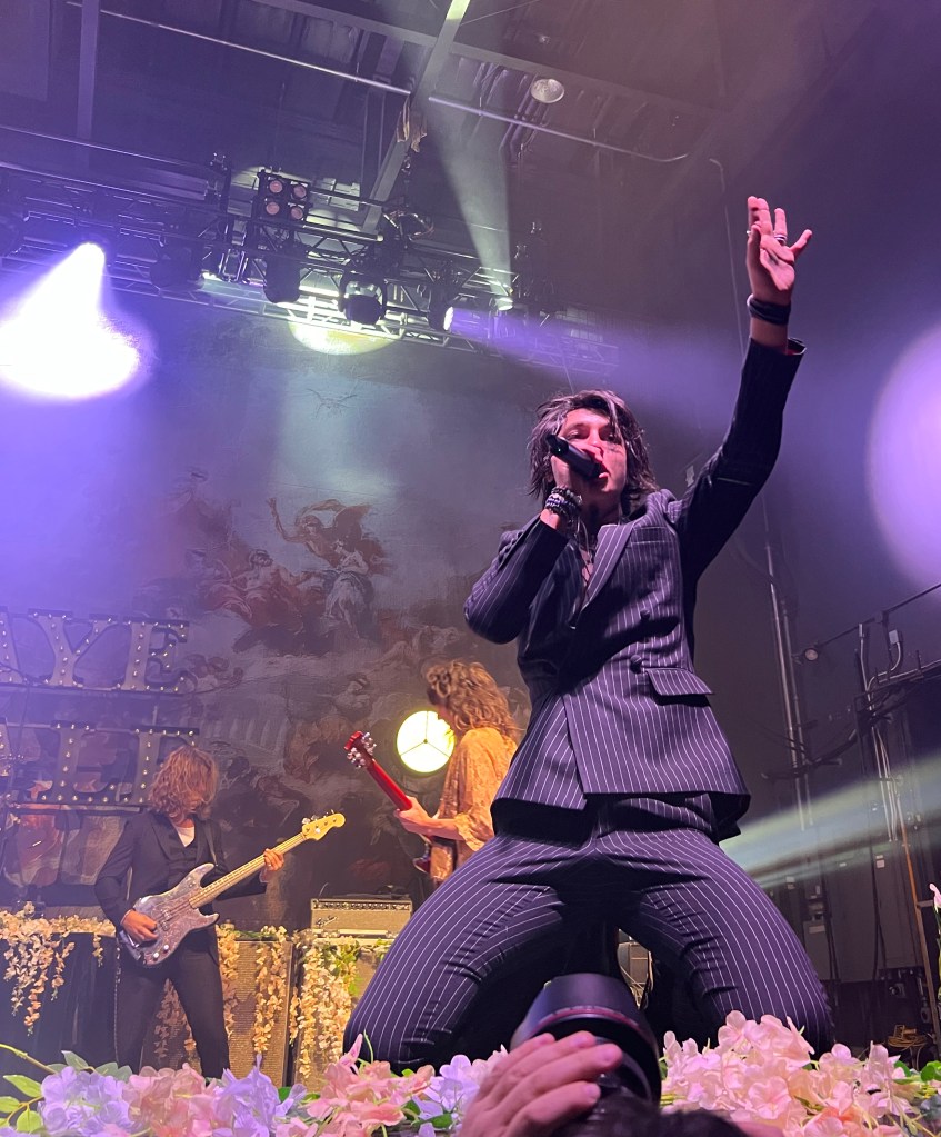 Now, it was time for the main part of the night: Palaye Royale. The stage was set with their iconic light up name and flowers filled the front of the stage. As the lights went out, the crowd started chanting “Sebastian,” the lead guitarist, and got louder and louder as the band began to fill the stage. When the first note of the opener, “Nightmares”, everyone went crazy. Phones were out moment the show began, snapping pictures and taking videos, while others just took in the moment. Everyone sang along at the top of their lungs and just let loose.