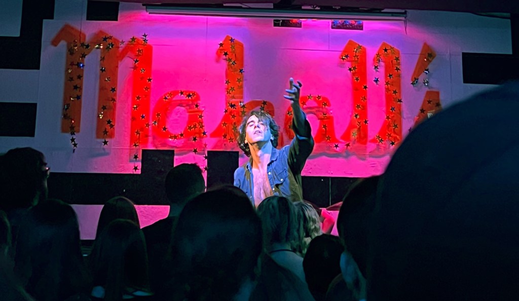 The first band of the night is getting ready to take the stage and the excitement is growing. The room is dark, lights shine on the set stage, ready for the show to begin.