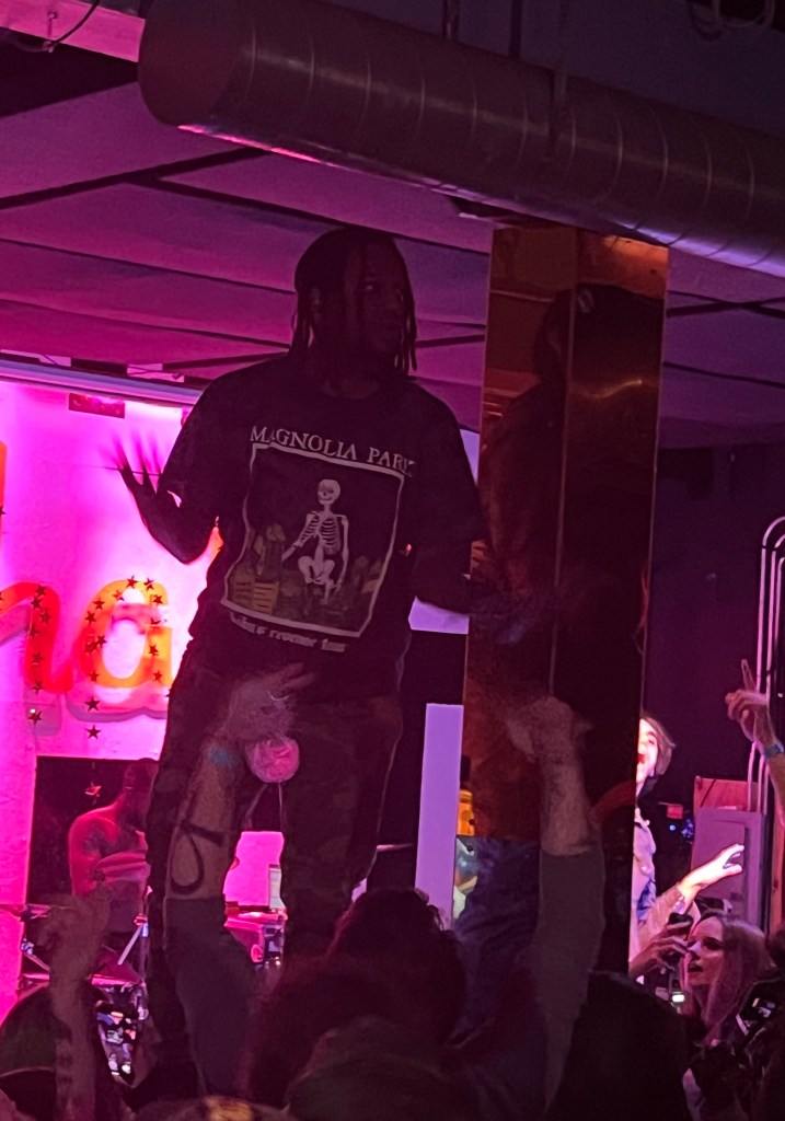 The set also brought out another collaboration between acts on the tour with some nostalgic energy. The band covered the iconic and fan favorite Fall Out Boy songs, “Sugar We’re Goin’ Down,” which was very fitting as their new album was dropping that Friday. Magnolia Park got the song started, people were singing, dancing, moshing and just living in the moment. The lead singer of First and Forever joined the stage and finished off the song with the group. Which made this one of the best moments of the night. Adding on to the already epic moment was when Joshua Roberts climbed up and hovered over the crowd. Just adding another level of connection, fun and energy to the show.