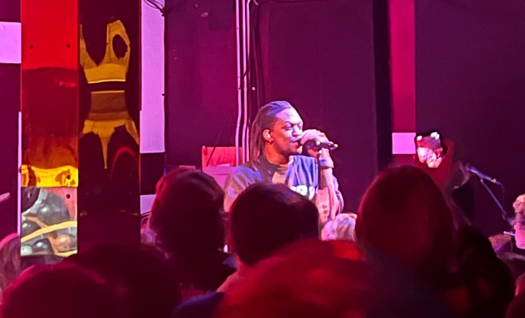 The room is packed wall to wall: people crowd near the front of the stage and cover the side risers and filter towards the back of the room. They file in from the bar and outside, getting their tickets checked and receiving their wristbands. The show is sold out and the amount of energy that radiates from the crowd emphasizes it. People push through the crowd to try and find a spot in the crowd.