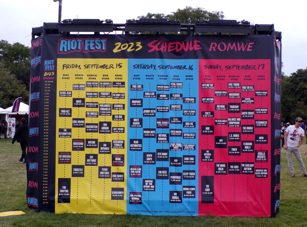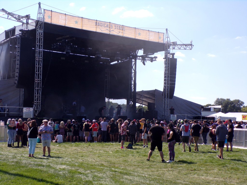 The first day of Riot Fest occurred on an overcast Friday, September 15, much different from the balmy weekends of festivals past. As soon as I passed the line of port-a-potties nearest the sling back queue, I heard Young Culture playing from the Radical stage. I’m not familiar enough with the band to recall what song was playing, but the energy of it was enough for me to wonder why I’m not already listening to Young Culture.