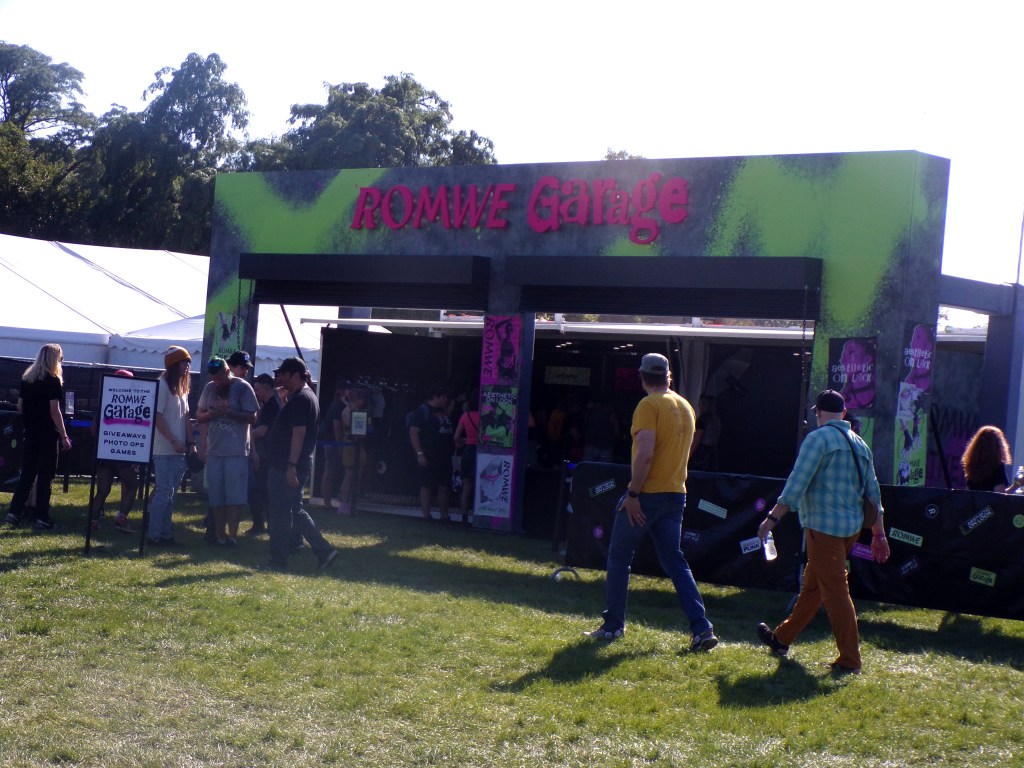 After their set ended, I decided to wander the grounds to see what else this Friday had to offer. Walking past the vast array of tents set up in Douglass Park, the main one to catch my eye was Romwe’s. In hot pink, ROMWE Garage was splashed across a facade made to look like a cement wall covered in lime green spray paint. I could immediately tell it was more of an experience than a simple tent, where guests could choose two accessories to take home for no charge. Beyond that was a shaded seating area, ping pong, an accessory station where you could customize a bracelet or choker and a photo op for participants to act out their rock star fantasies.
