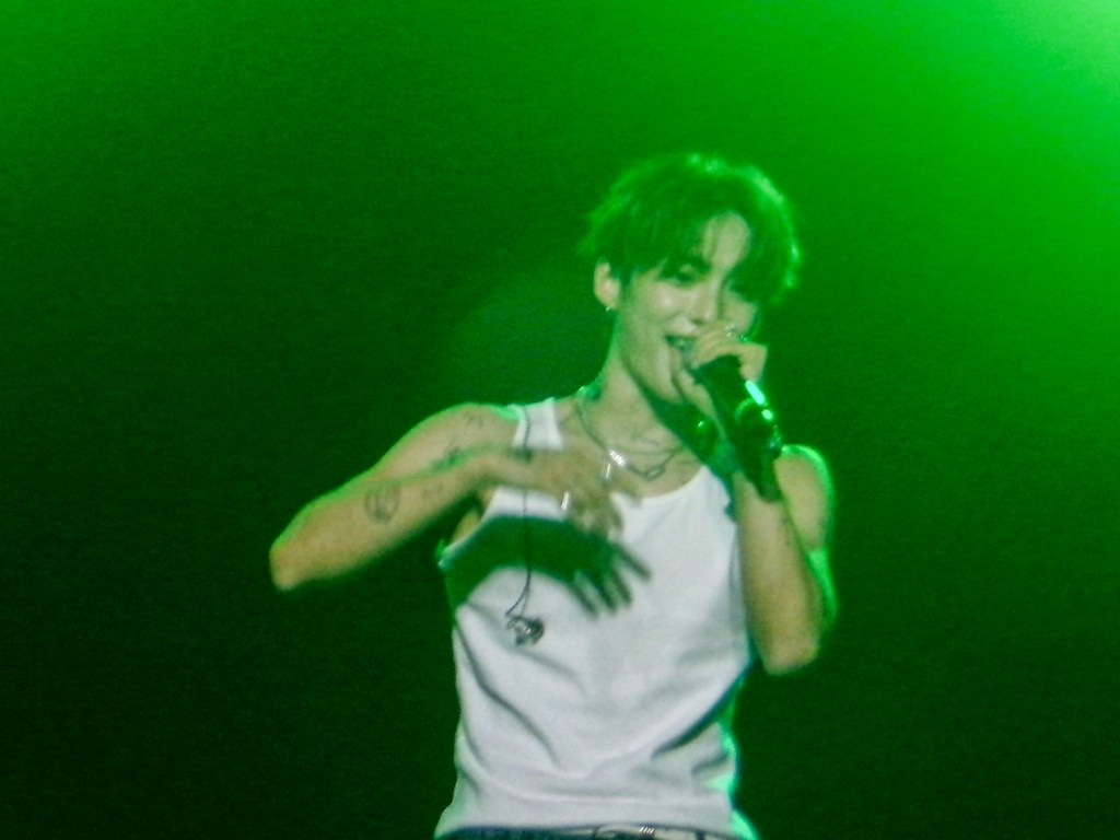 As good of an album as it is, you can’t fill a 90 minute set with only eight tracks. As such, the setlist included a good number of covers. One such cover was “Your Idol” by Saja Boys of the 2025 global phenomenon K-Pop Demon Hunters, which was fitting not just because his cover of the track has garnered 7.5 million views on YouTube. Junhee fully embodied the song, even wearing just a white tank top and blue jeans, body rolling and belting until the entire crowd was under his spell.
